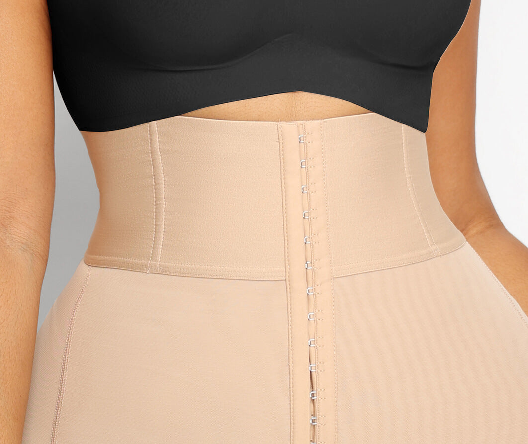 Vooraan haakjes en oogjes sluitingen voor een op maat gemaakte pasvorm en het verminderen van je taille met wel twee maten.
